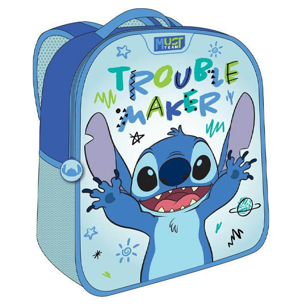 ΣΧΟΛΙΚΗ ΤΣΑΝΤΑ ΠΛΑΤΗΣ ΝΗΠΙΟΥ DISNEY STITCH TROUBLE MAKER MUST TEAM 3D EVA 1 ΘΗΚΗ